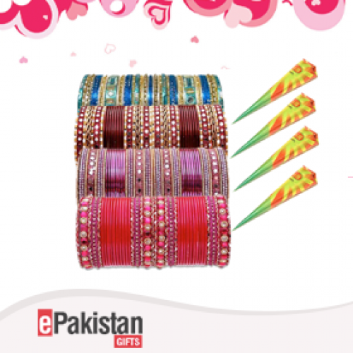 Four packets of Mehndi cones with four attractive Choori sets in contrast shades.