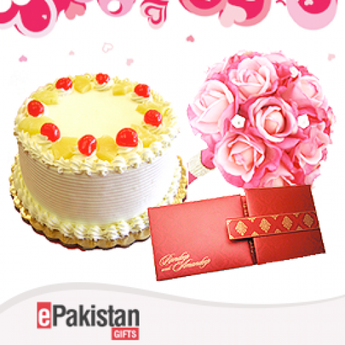 Flowers are a symbol of love and affection. Send your loved ones with the most blooming and fresh bunch of flowers, beautifully assembled to make you wish a sincere one along with the most delicious pineapple cake carefully baked and decorated to give you a blissful experience. It’s not all; send your wishes through our card with this amazing combo in Pakistan